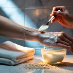 Start with clean, damp legs so the sugar glides rather than scratches. Mix 2 parts brown sugar with 1 part coconut oil in a bowl; aim for a scoopable paste that holds together without dripping. If your bathroom is cool and the oil solidifies, warm the container between your hands for a minute. Patch-test on a small area first if you have sensitive skin or a history of reactions. Scoop a walnut-sized amount per calf and the same per thigh.